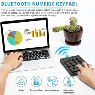 Bluetooth Number Pad Wireless Numeric Keypad 10 Key Numpad for Laptops Compatible with ChromeBook, ThinkBook, MateBook, Inspiron Computer Desktop Office Accessories Financial Accounting Pad
